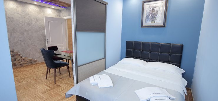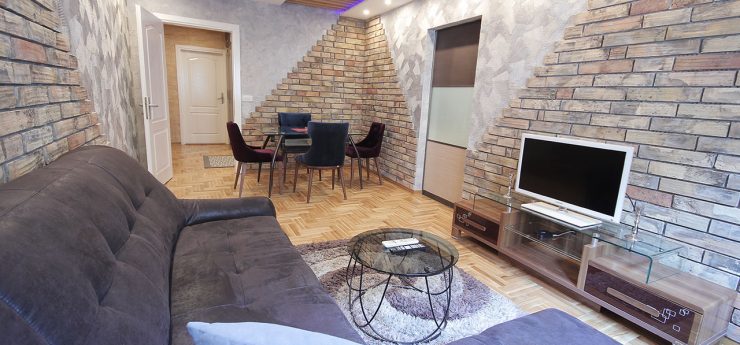 Balkan apartment, with three bedrooms, represents and oasis of peace in the city center. All rooms in the apartment are modern, with comfortable black and white furniture. An intriguing feature of the apartment is the ambient lighting in purple shades, which provides a touch of mystique to the apartment, especially when the night falls.