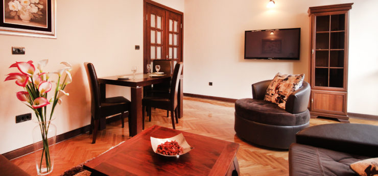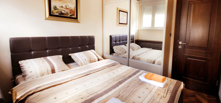 Elegance Belgrade apartment is large (90m² in surface), very comfortable and suitable for up to seven guests. It is a two bedroom Belgrade apartment, with double beds in each bedroom and a single bed in one of the bedrooms. As the name of the apartment suggests, the decor is elegant. The living room of Belgrade apartment is spacious, and so are the bedrooms and the kitchen. The bathroom is also very stylish. This Belgrade apartment for rent is perfect for two pairs of guests or just two guests who want separate rooms. If you are looking for luxury Belgrade apartment at an affordable price, Elegance is a very good choice.