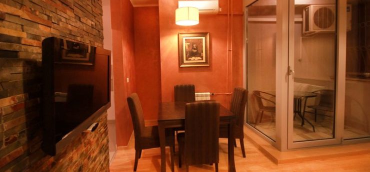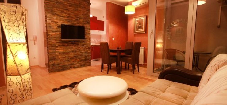 Zorza Klemansoa Street is one of the rare Belgrade streets with peace and quiet and modern buildings. Francuska apartment Belgrade is located in one of these buildings and is equipped with new and modern furniture in a crème colour. The living room’s dominant colour is a warm orange and gives the apartment a romantic feel. The lovely apartment’s terrace is separated from the living room with glass, giving you impression that it is part of the indoors. The bathroom is equipped with a tub, giving the apartment a homely feel.