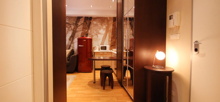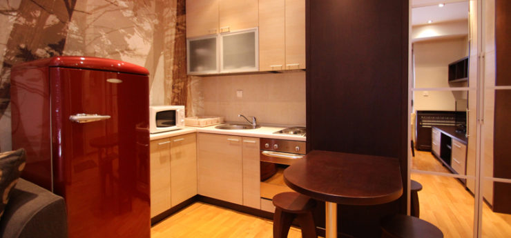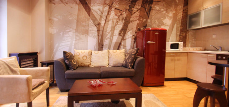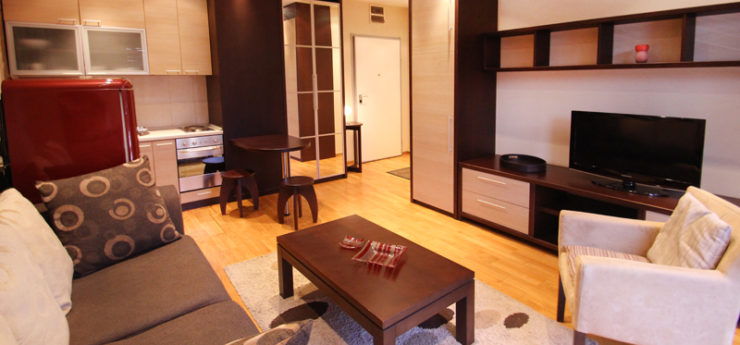 The main advantage of this Belgrade apartment is its suitability for smaller number of visitors, ideally 1-4. PREMIUM Belgrade apartment has one bedroom with double bed, a large living room with cooking space and the covered balcony. You can access the balcony directly from the bedroom, so you can both start and finish your day by going from one to another. Premium Apartment has large bedroom, with make-up desk with a mirror, and the bathroom is similarly extensive. The interior design of PREMIUM Belgrade apartment is very much liked by our guests, as it is both dynamic and relaxing.