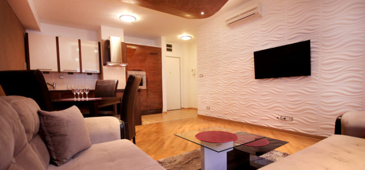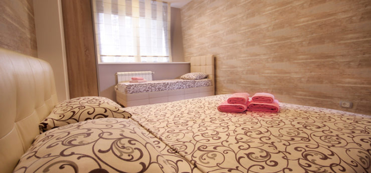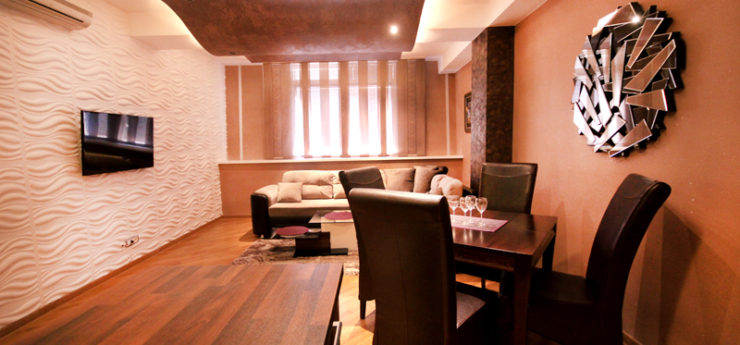 Relax apartment Belgrade opened its doors during the summer of 2014. Relax apartment Belgrade is the eight apartment owned by our SKY agency in the same building in Pajsijeva street, Belgrade. That made our capacity for the accommodation of large groups even more substantial. Over 60 guests can find lodgings in the same building, all beds being taken, or we can receive 24 quests who prefer to have each his/hers own room. Relax apartment for rent configuration is as follows: a big living room together with the kitchen and the dining area, while the bedroom has one double bed and one single bed.