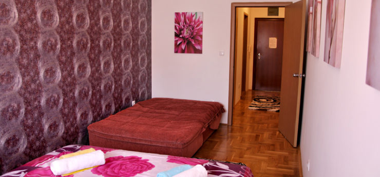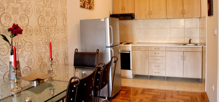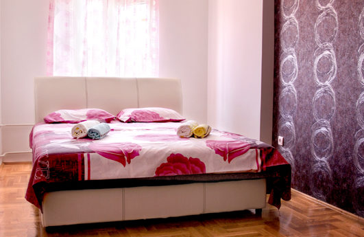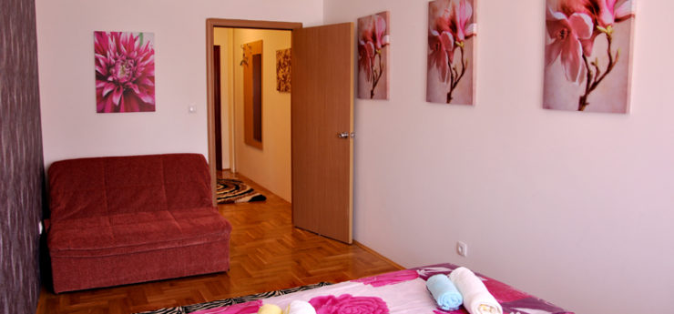 Rich is one bedroom apartment, ideal for a single guest, a pair of guests or a pair of guest with children, but it can also accomm odate up to five guests in total, if the living room with its large pull-out bed is to be also used for sleeping. This kind of accommodation in Belgrade is very convenient, as this apartment for rent if very well furnished and still has a more than competitive price, because is not in the inner center of the city and because it is not so large in area. One double bed and a single bed are in a bedroom, while the living room has a big couch, a large TV and a dining area, next to which is a fully equipped kitchen. Rich apartment in Belgrade is equally good for a business trip, a holiday or a tourist visit.