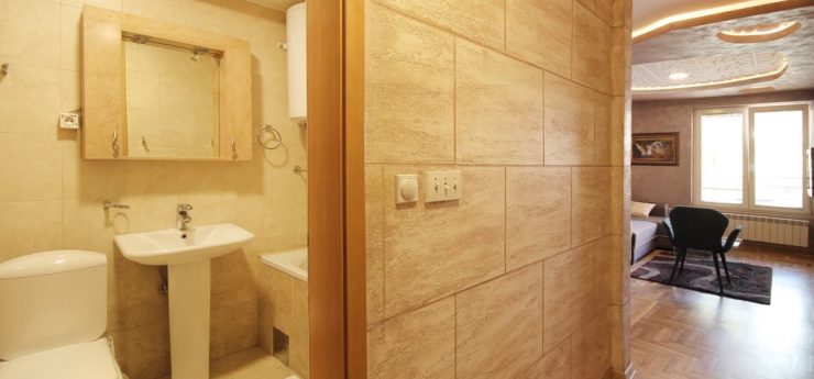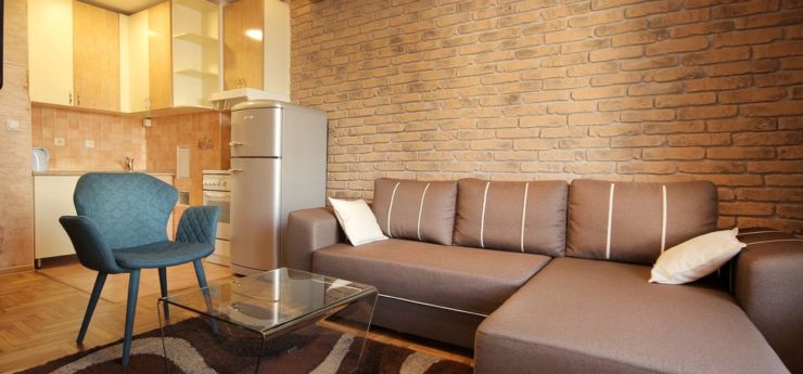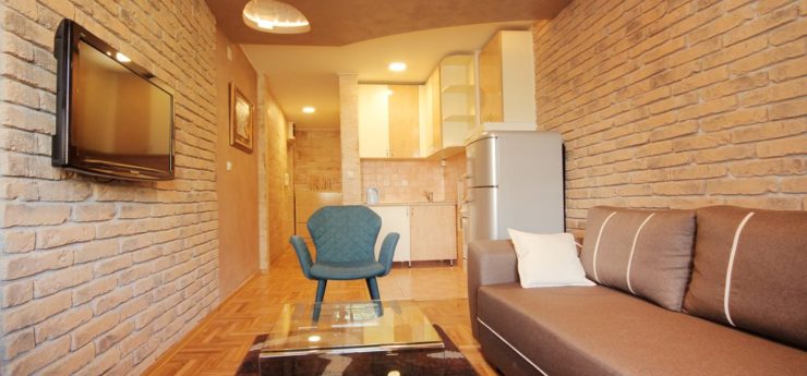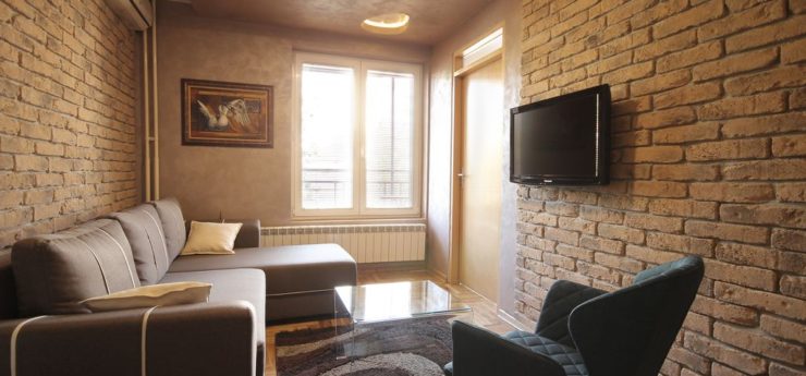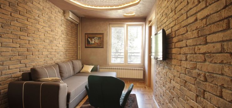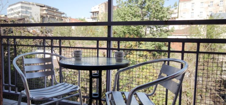 The main advantage of Trg apartment Belgrade is its suitability for smaller number of visitors, ideally 1-4. Trg apartment has one bedroom with double bed, a large living room with cooking space and the balcony, which is covered. You can access the balcony directly from the apartment’s bedroom. Trg apartment Belgrade has large bedroom, with make-up desk with a mirror, and the bathroom is similarly extensive. The interior design of Trg apartment Belgrade is very much liked by our guests, as it is both dynamic and relaxing.